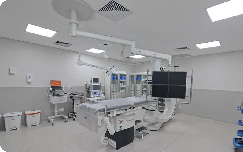 Com um espaço amplo e equipamentos de última geração, o serviço conta com uma completa linha de diagnósticos não invasivos, além de uma moderna sala de hemodinâmica, preparada para procedimentos intervencionistas com elevado nível de assertividade. Essa estrutura permite atuar de forma integrada nas áreas de cardiologia, neurologia e angiologia, proporcionando melhores desfechos clínicos e mais conforto aos pacientes.