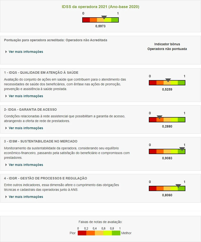 E conforme estabelecido no artigo 21 - A da Resolução Normativa 386/2015, a Operadora está divulgando o resultado do IDSS em seu Portal.